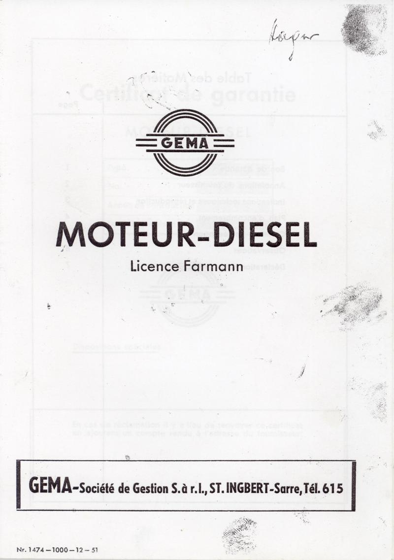 Bei Nachforschungen über den eingesetzten Farymann-Dieselmotor wurden wir auf den GEMA-Dieselmotor aufmerksam,
