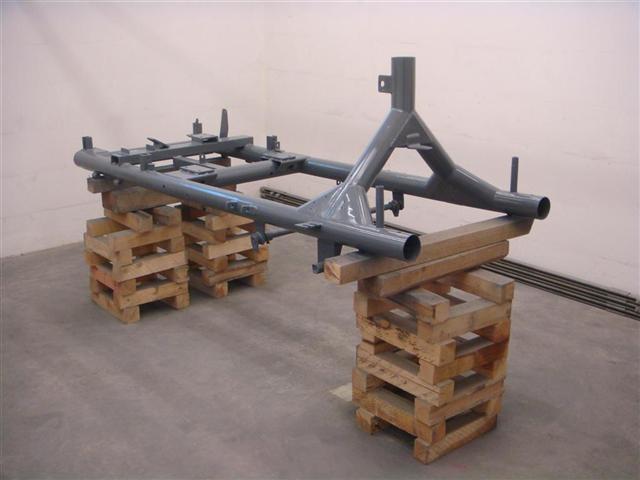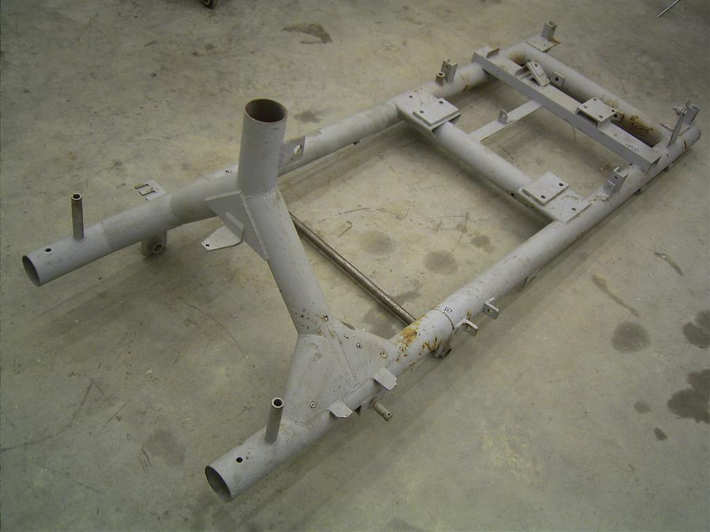 Dieselzwerg-Rahmen nach dem Sandstrahlen und Grundieren.
