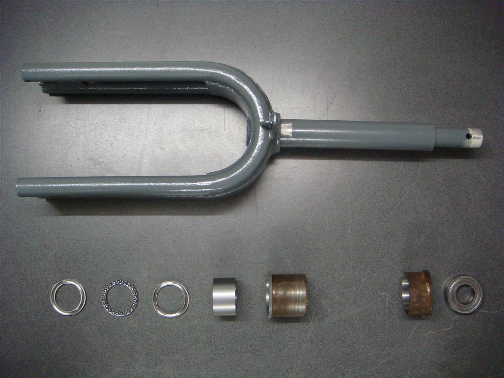 Die restaurierte Gabel mit dem Innenleben der Lenkung. Leider gingen