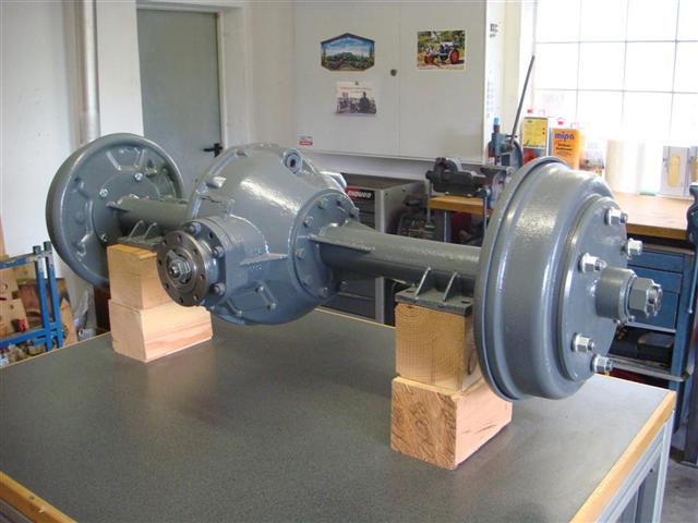 Das Getriebe wurde überholt, sandgestrahlt, grundiert