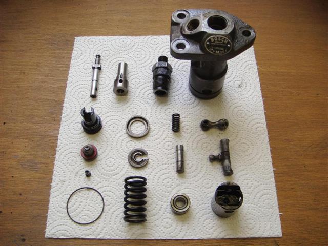 Die Einzelteile der überholten Bosch Einspritzpumpe.